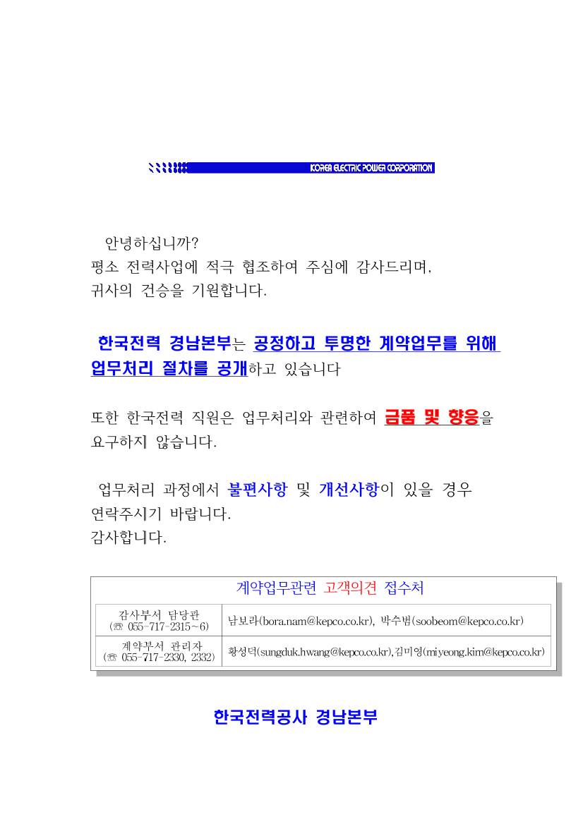 한국전력공사 경남본부 기획관리실 재무자재부 |