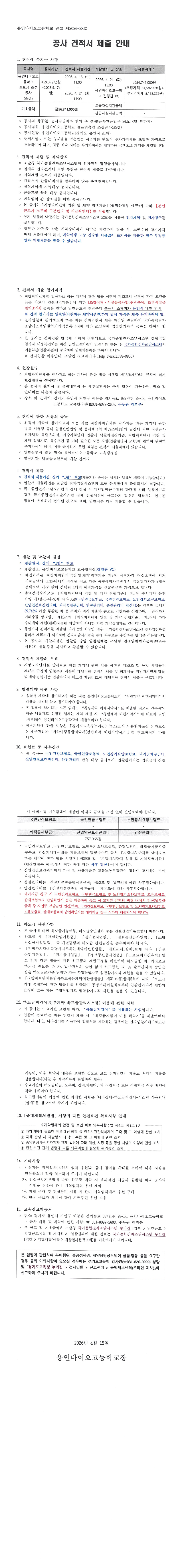 용인바이오고 골프연습장 조성공사 소액수의 견적 제출 공고 |