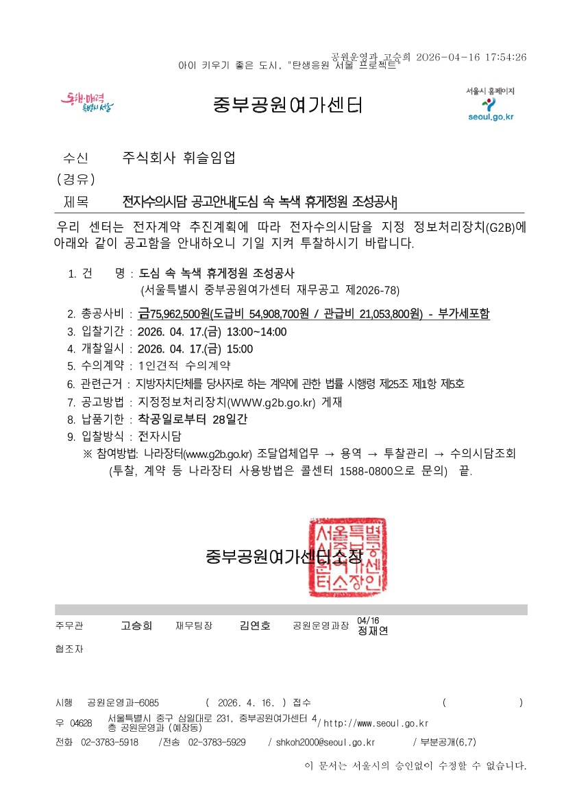 도심 속 녹색 휴게정원 조성공사 |