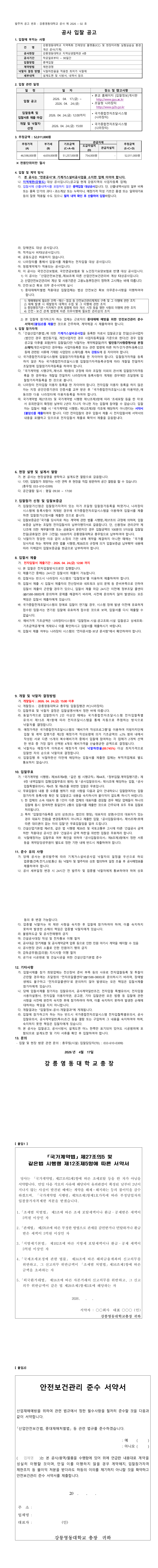 강릉영동대학교 지역특화 인재양성 플랫폼(ICC) 및 현장미러형 실험실습실 환경개선 공사(기계) |