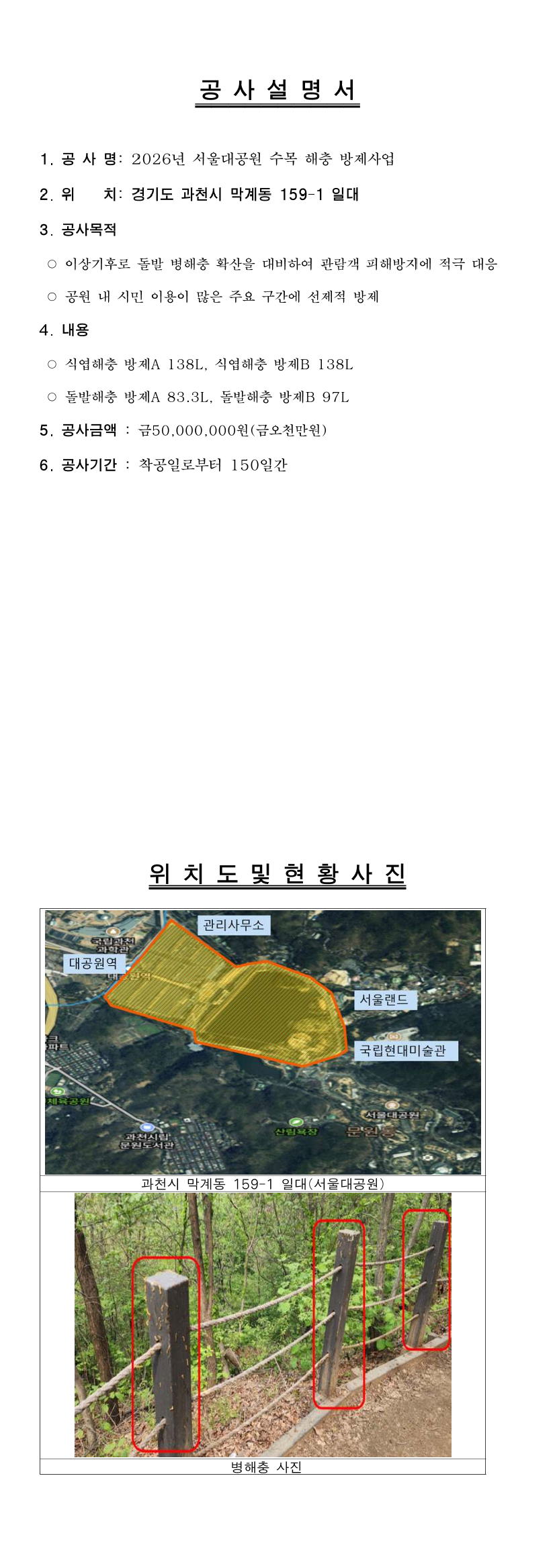 2026년 서울대공원 수목 해충 방제사업 |