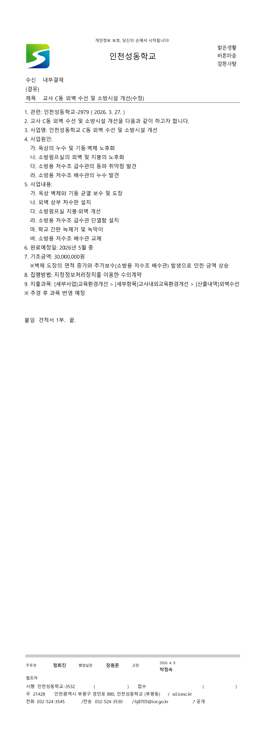 인천성동학교 교사C동 외벽 수선 및 소방시설 개선 |