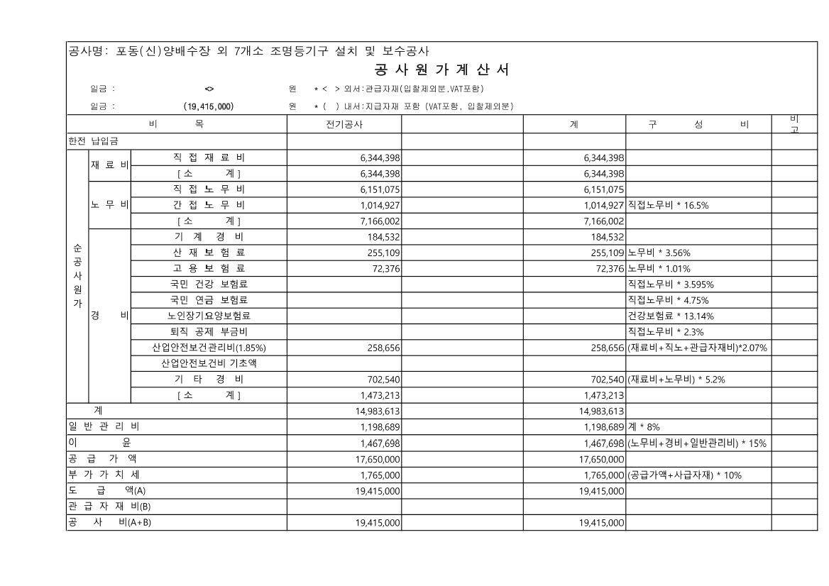 포동(신)양배수장 외 7개소 투광등기구 설치 및 보수공사 |