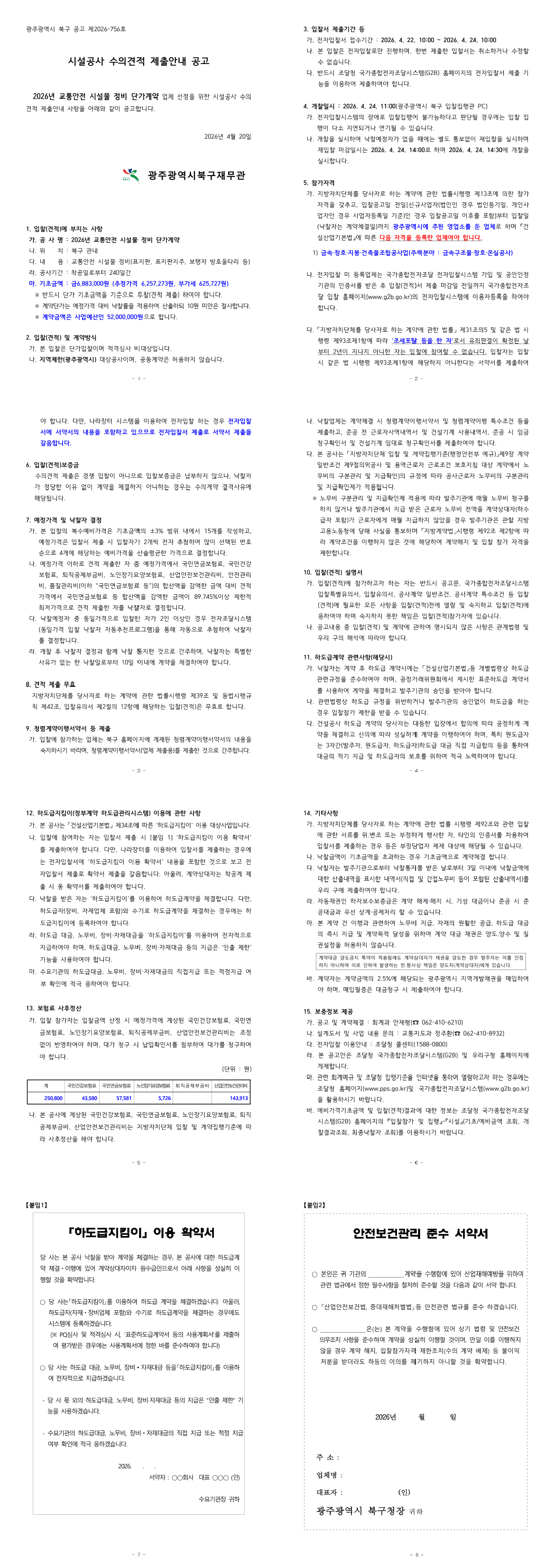 2026년 교통안전 시설물 정비 단가계약 |
