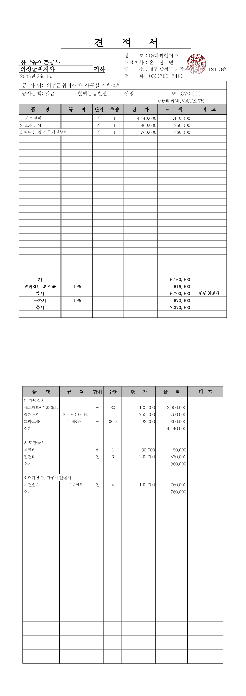 사무실 내 가벽 설치 공사 |