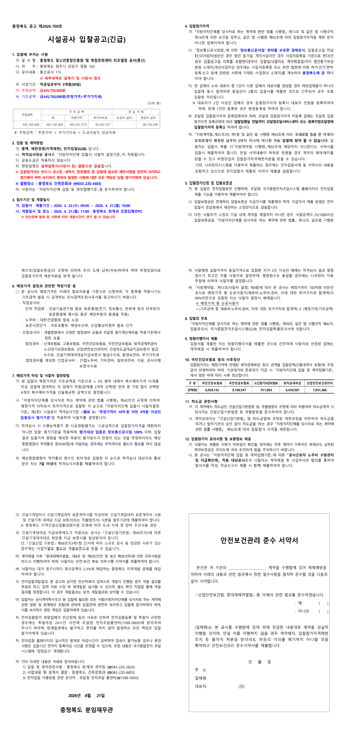 충청북도 청소년종합진흥원 및 복합문화센터 리모델링 공사(통신) |