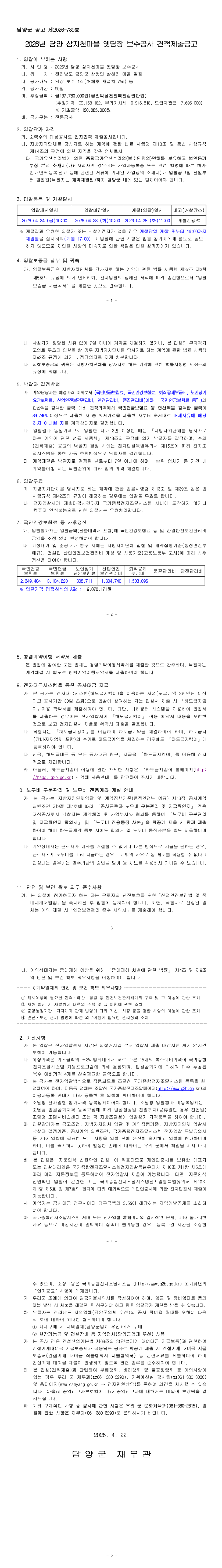 2026년 담양 삼지천마을 옛담장 보수공사 견적제출공고 |