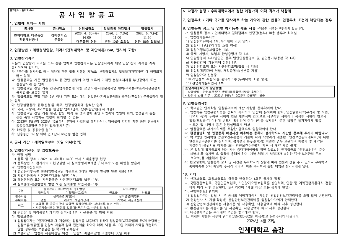 인제대학교 대운동장환경개선공사(인조잔디) |