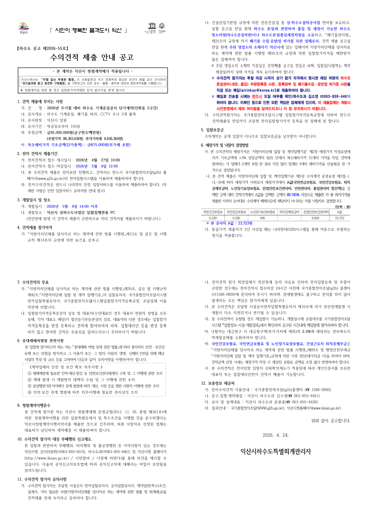 2026년 우기철 대비 하수도 기계준설공사 단가계약(인화동 2구간) |