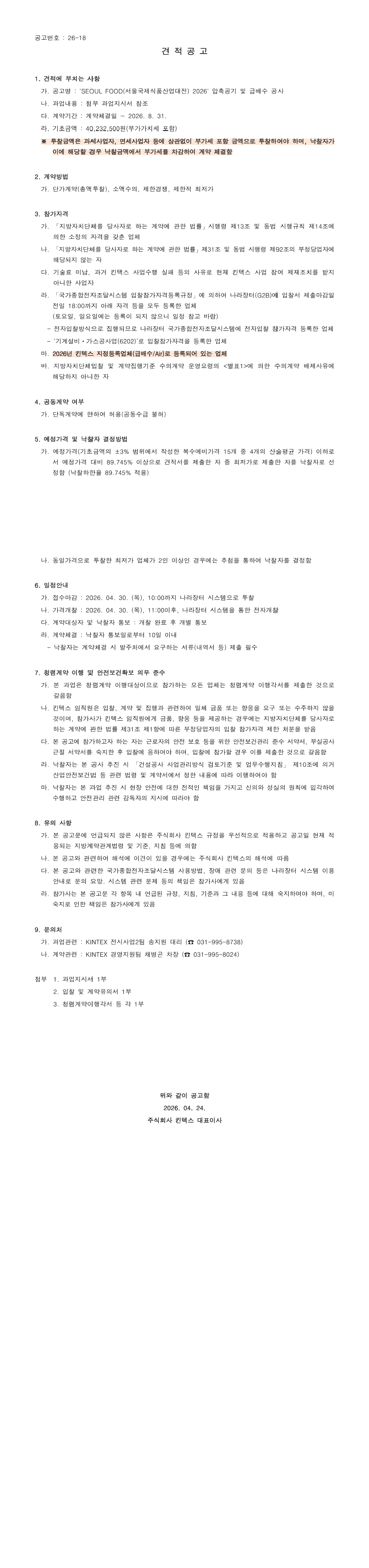 SEOUL FOOD(서울국제식품산업대전) 2026 압축공기 및 급배수 공사 |