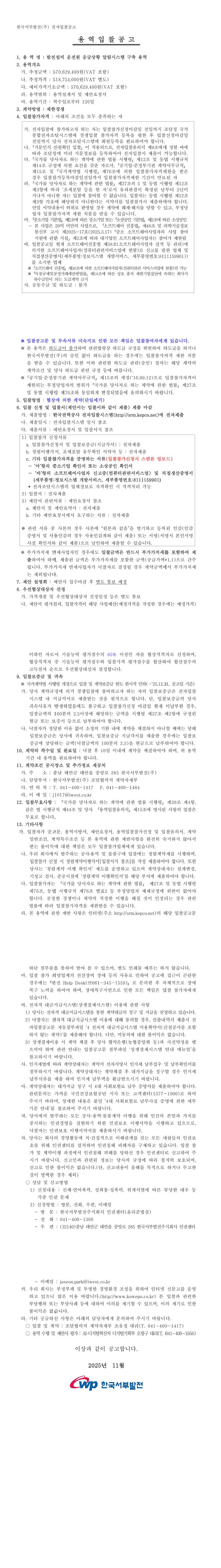 한국서부발전(주) 미래사업본부 조달협력처 계약자재부 |