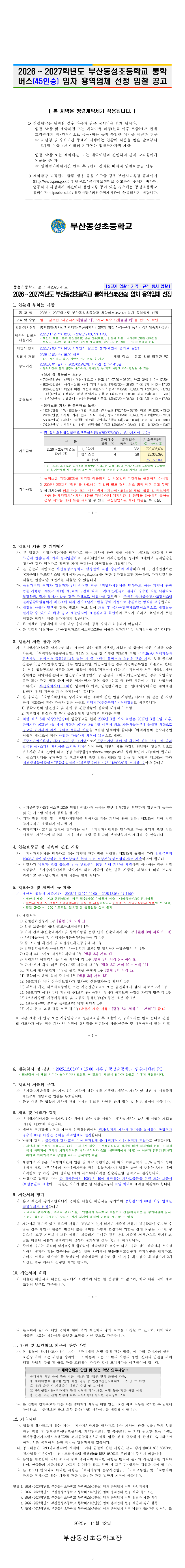 2026 ~ 2027학년도 부산동성초등학교 통학차량(45인승) 임차 용역업체 선정 |