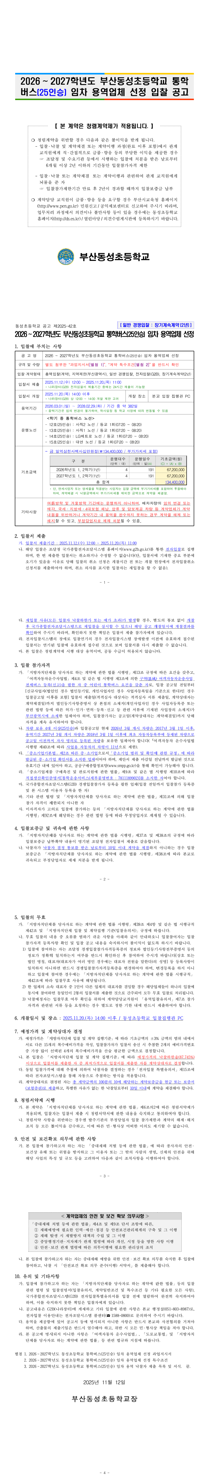 2026 ~ 2027학년도 부산동성초등학교 통학버스(25인승) 임차 용역업체 선정 |