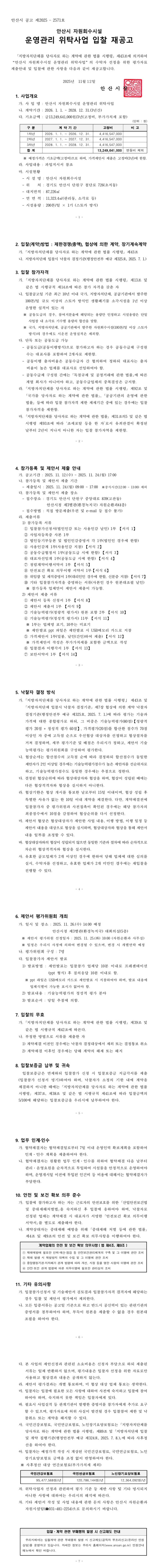 (긴급)안산시 자원회수시설 운영관리 위탁사업 재공고 |