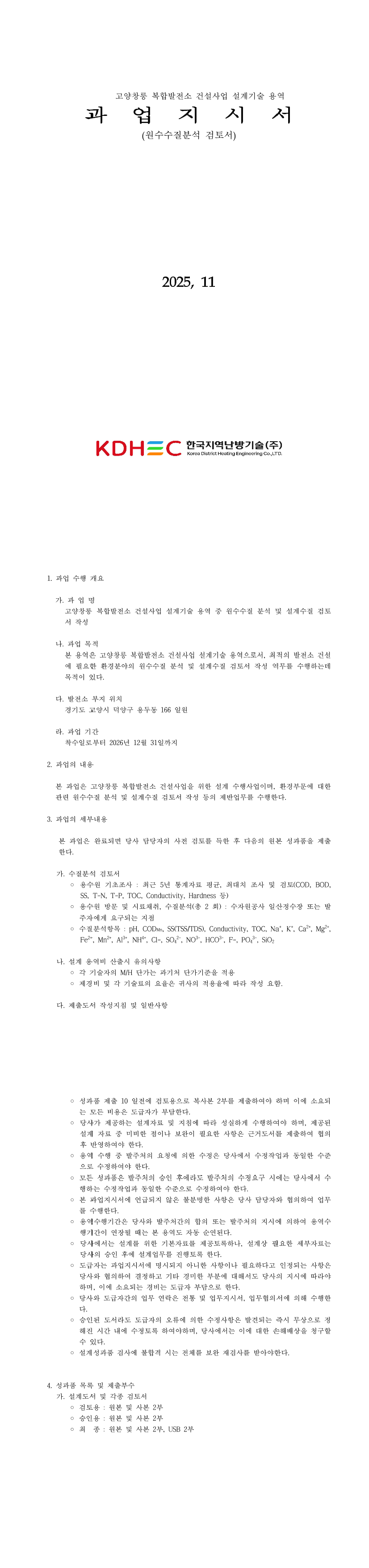 고양·창릉 복합발전소 건설사업 설계기술 용역(환경/원수수질분석 및 설계수질 검토) |
