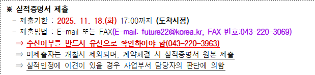 ※ 소기업·소상공인확인서는 계약체결일까지, 직접생산증명서는 견적서 제출 마감일 전일까지 발급·신고·수정된 것으로 유효기간 내의 것이어야 합니다.