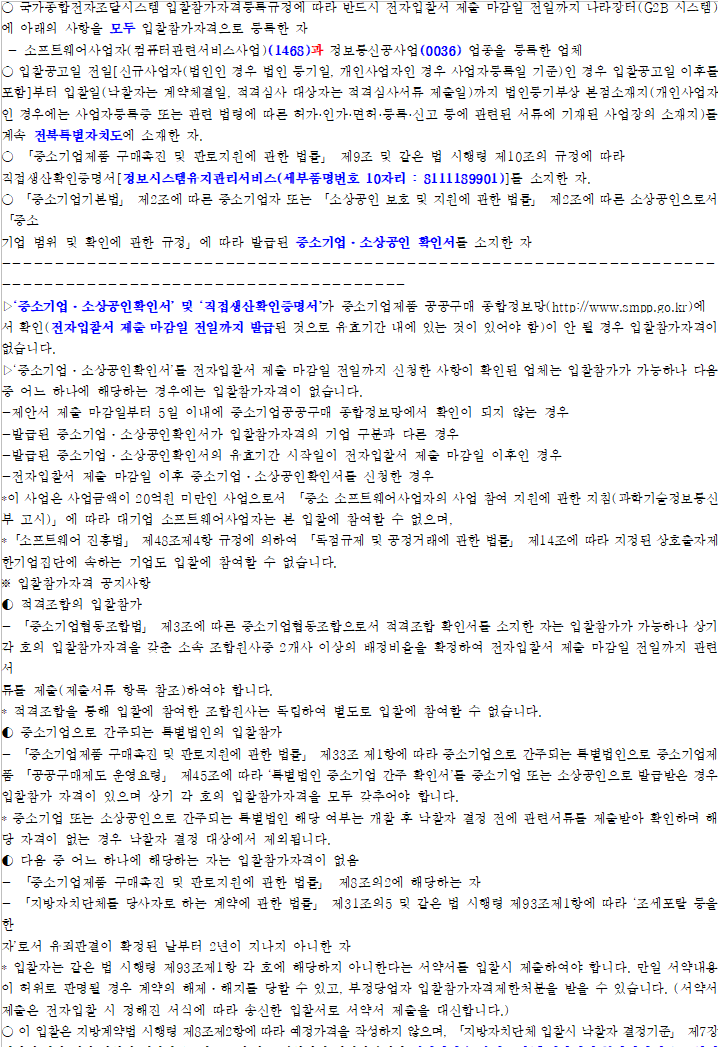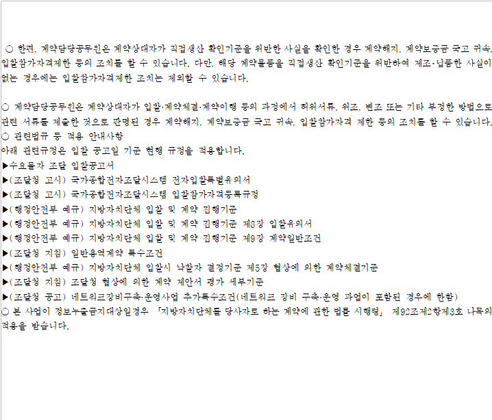 * 별도 제안서 발표는 하지 않습니다.(단, 입찰 참여업체는 나라장터에서 실시간 온라인 답변등록)