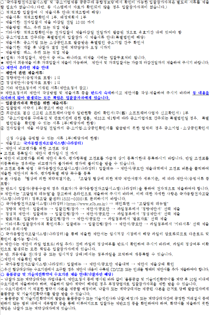 * 평가위원이 나라장터에서 온라인으로 평가하며, 별도 제안서 발표는 하지 않습니다.