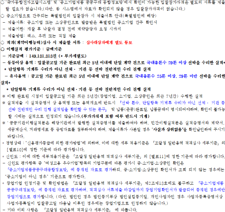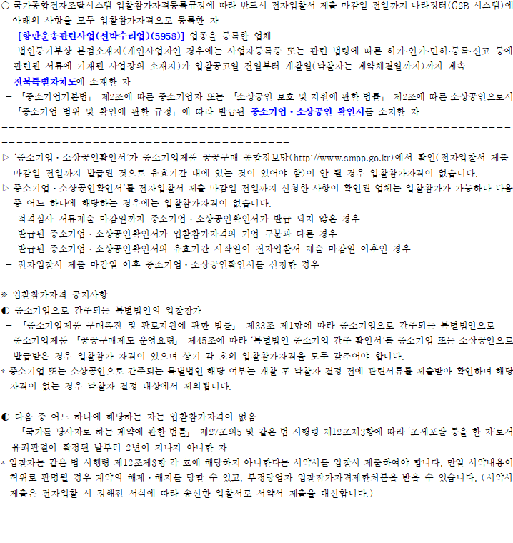 · 입찰에 참여하시기 전에반드시 공고서를 숙지하여 정확한 제한 업종을 확인하시기 바랍니다.