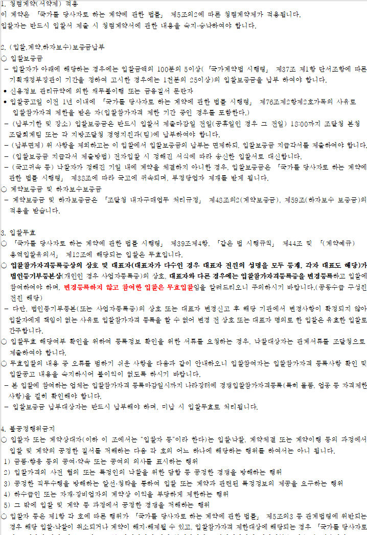 이 입찰 설명서는 입찰자와 낙찰자가 숙지하고 준수하여야 할 사항을 기재한 것으로써 모든 입찰희망자는 이를 열람하여야 합니