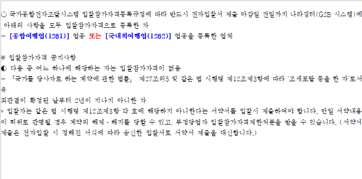 이 입찰 설명서는 입찰자와 낙찰자가 숙지하고 준수하여야 할 사항을 기재한 것으로써 모든 입찰희망자는 이를 열람하여야 합니