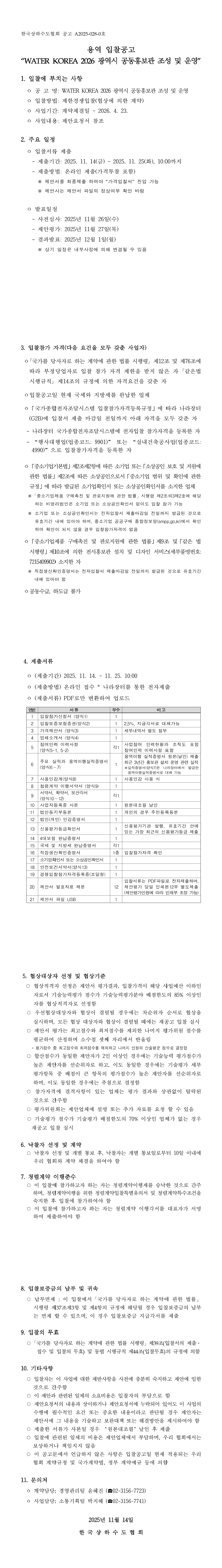 WATER KOREA 2026 광역시 공동홍보관 조성 및 운영 |