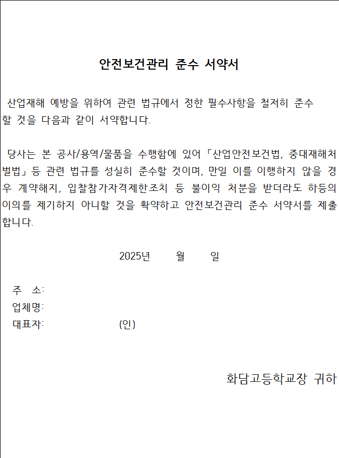 2026학년도 화담고등학교 2학년 숙박형 체험학습(제주도) 위탁 용역 입찰공고