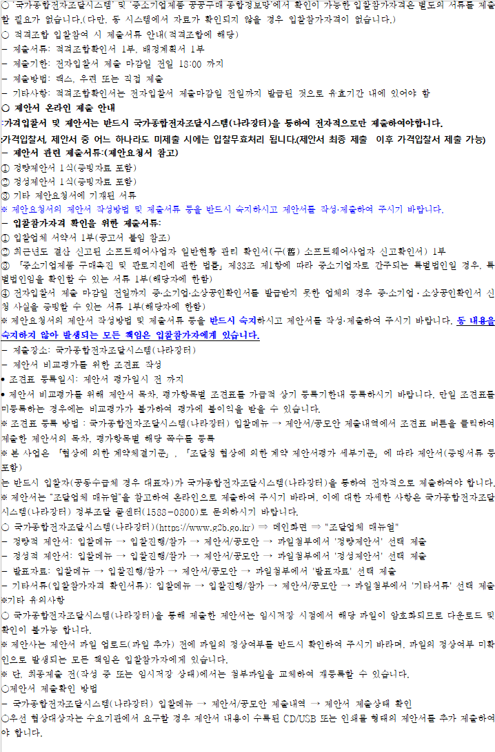 * 평가위원이 나라장터에서 온라인으로 평가하며, 별도 제안서 발표는 하지 않습니다.