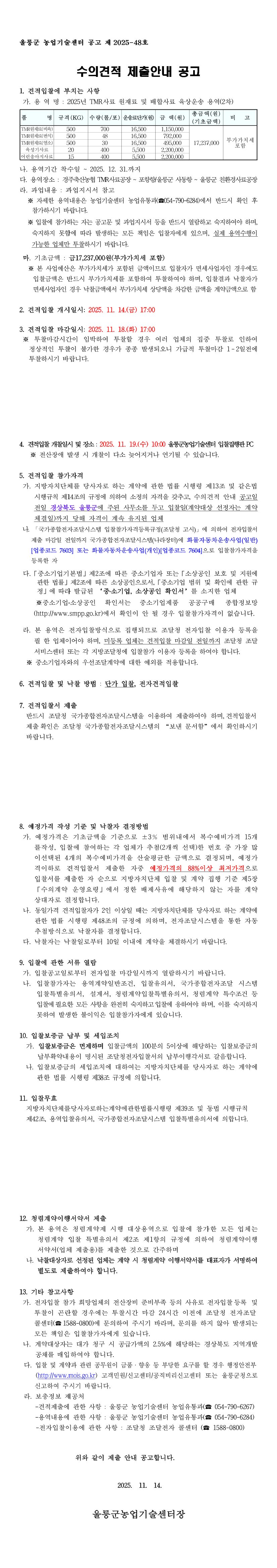 2025년 TMR사료 원재료 및 배합사료 육상운송 용역(2차)(2인이상 견적제출) |