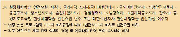 ※ 우천 및 천재지변으로 인한 예비프로그램 등을 업체가 작성하여 낙찰 후 학교와 업체 간 협의로 결정