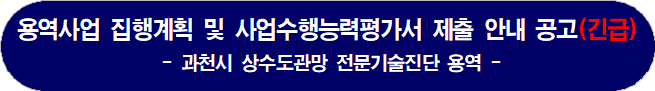 ▸ 과업 관련 문의 : 과천시 맑은물사업소 맑은물공급팀(02-2150-3721)