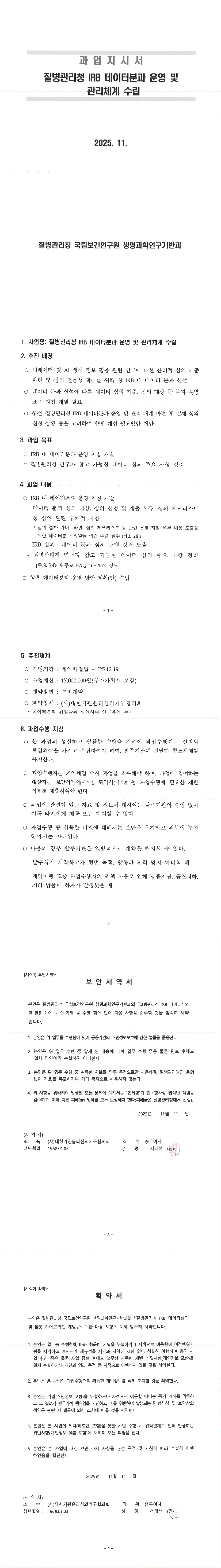 [일반용역] (사유서_2천이하_전자시담) 수의_ IRB데이터분과 운영 및 관리체계 수립 용역_생명과학연구기반과 |