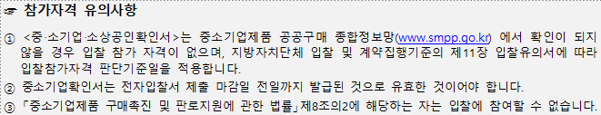 다. 공고일 기준으로 휴·폐업, 영업 정지 등의 처분기간 중인 업체이거나 부도, 파산, 해산, 영업정지 등의 상태에 있는 업체는 입찰 참가 제한이 되며, 자격심사 후에도 상기 사유 발생 시 입찰 참가 자격이 박탈될 수 있습니다.