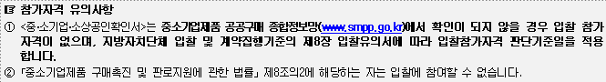 ※「중소기업제품 구매촉진 및 판로지원에 관한 법률 시행령」 제2조의3에 따라 용역계약을 비영리법인과 체결하려는 경우 중소기업자와의 우선조달계약에 제외됩니다.