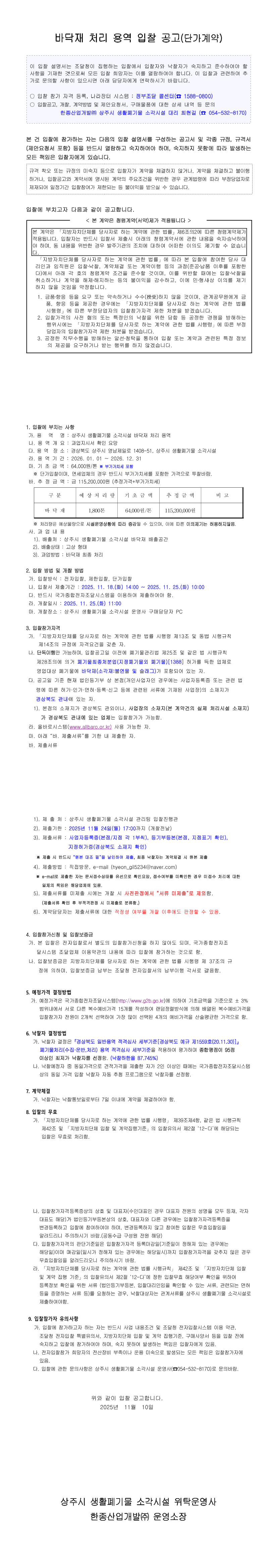상주시 생활폐기물 소각시설 바닥재 처리 용역 |