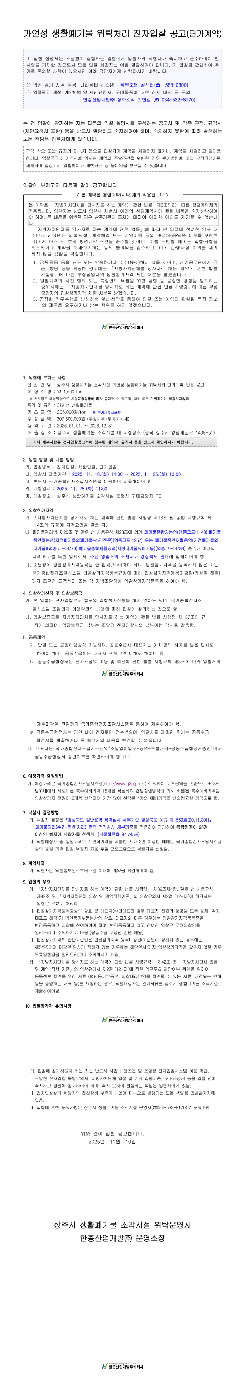 상주시 생활폐기물 소각시설 가연성생활폐기물 위탁처리 용역 |