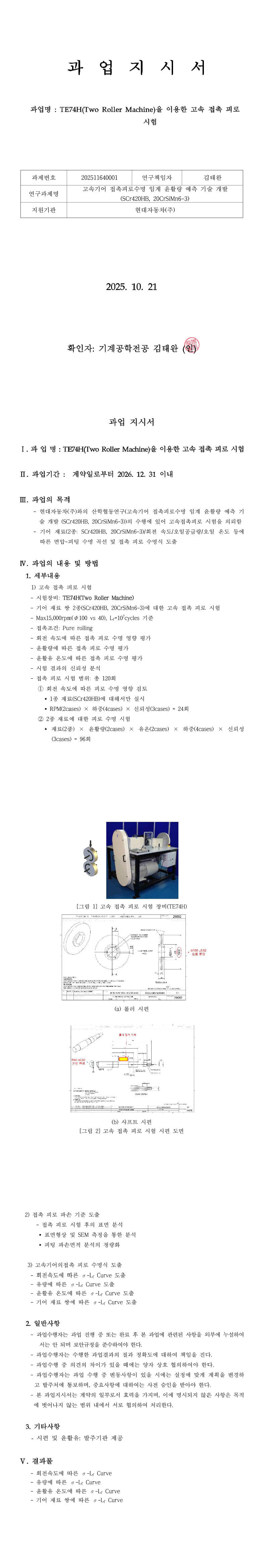 TE74H(Two Roller Machine)을 이용한 고속 접촉 피로 시험 |