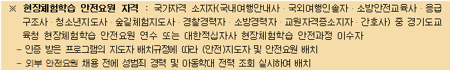 시설사용료, 수련활동비, 안전요원(주간 13명이상, 야간 7명이상), 기타경비