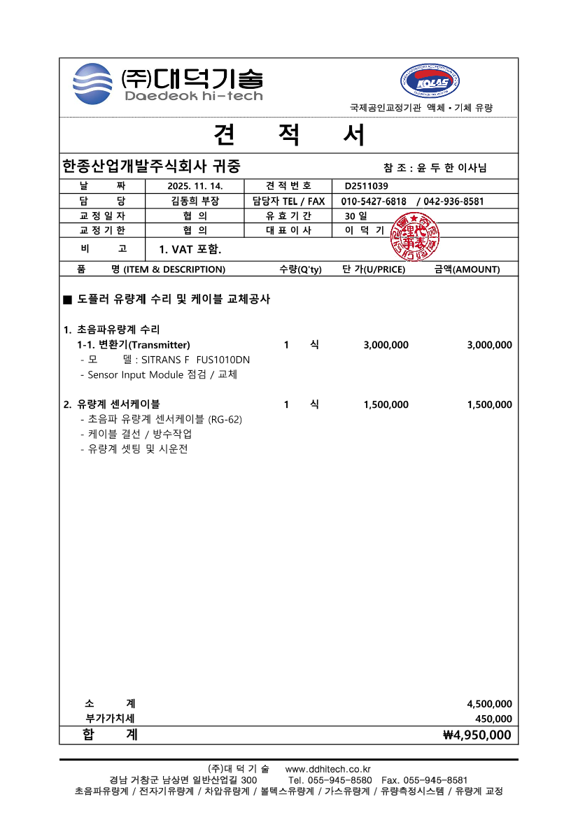 질산화탈질조 유입유량계(FT-401 G)수리 |