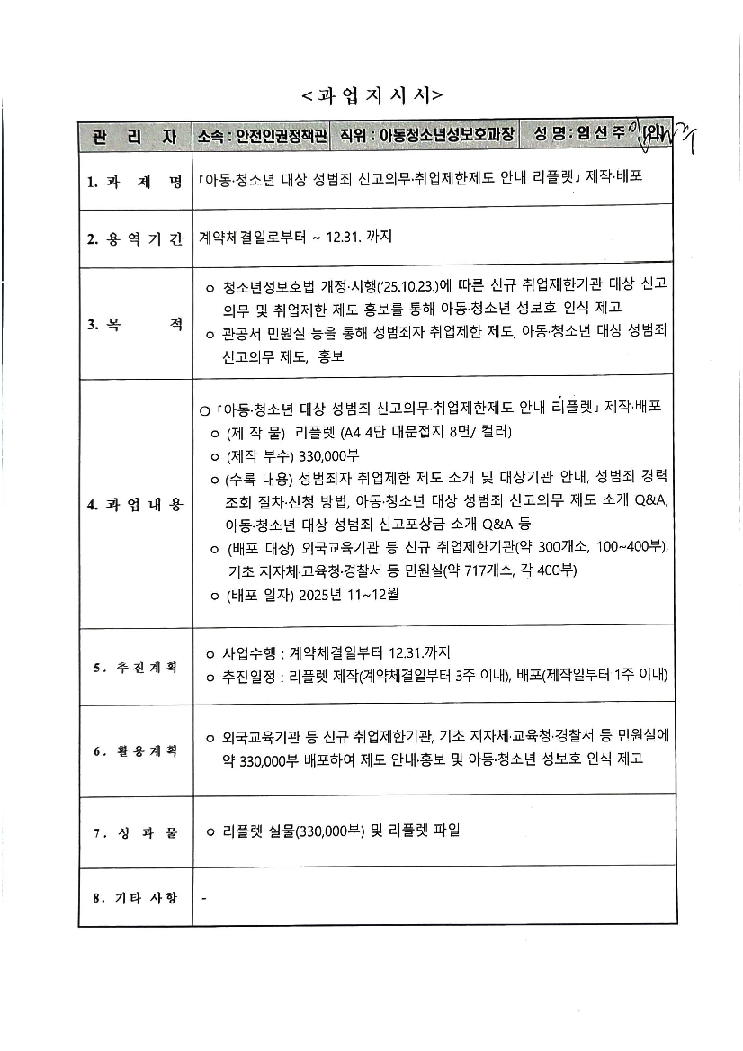 아동 청소년 대상 성범죄 신고의무 취업제한제도 안내 리플렛 제작 배포 |