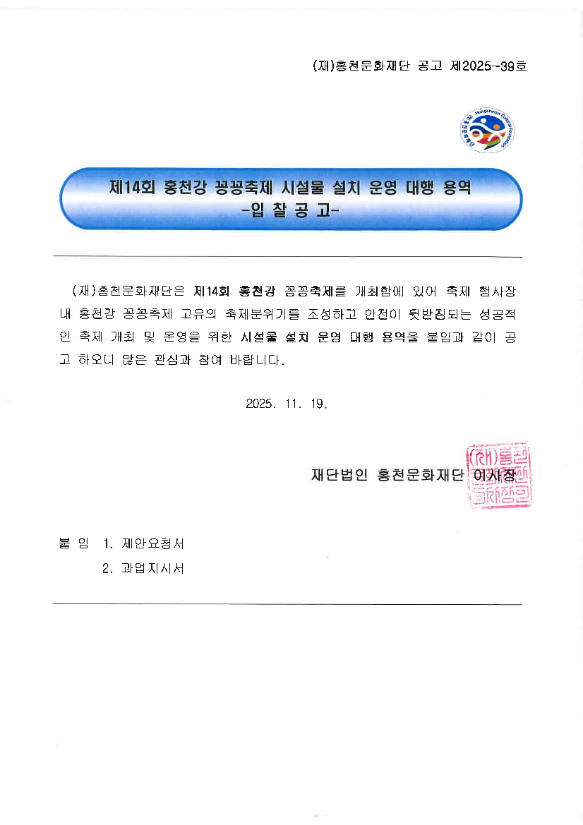 제14회 홍천강 꽁꽁축제 시설물 설치 운영 대행 용역 |