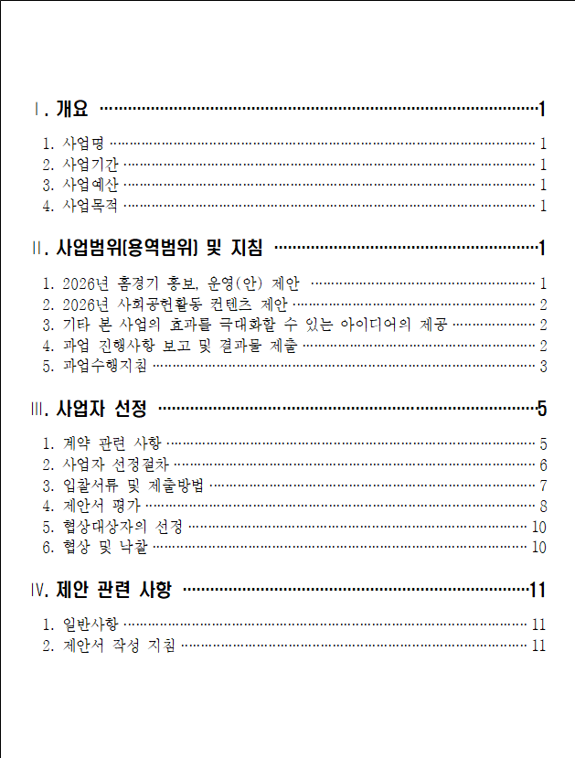 1. 2026년 홈경기 홍보, 운영(안) 제안 및 현장 대행운영