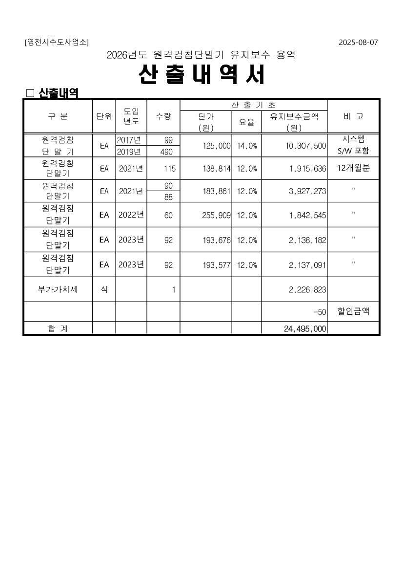 2026년 상수도 원격검침 단말기 유지보수 용역 |