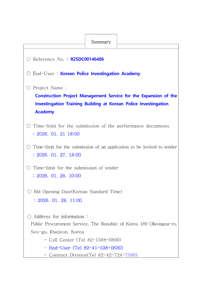 경찰수사연수원 수사교육동 증축사업 건설사업관리용역(감독권한대행) |