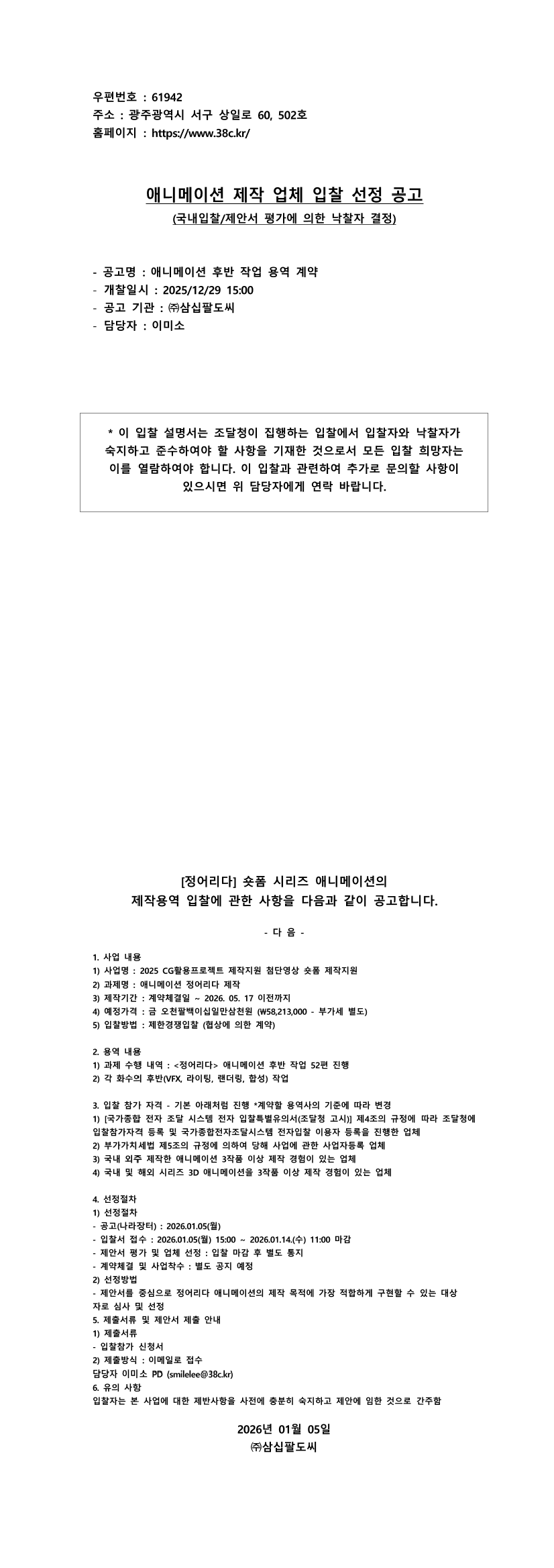 정어리다 숏폼 애니메이션 후반 콘텐츠 제작 용역 |
