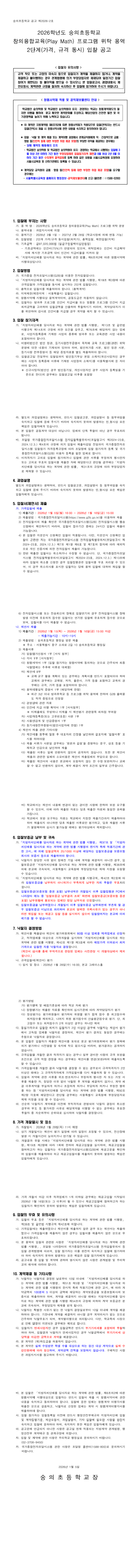 2026학년도 숭의초등학교 창의융합교육 위탁 용역 |
