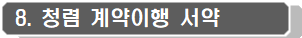 가.본 용역은 「지방자치단체를 당사자로 하는 계약에 관한 법률」 제6조의 2 규정에 따른 청렴 서약제 및 청렴 계약이행 대상 계약입니다. 입찰에 참여하는 자는 청렴계약입찰유의서 제2조 21항에 의거 청렴계약 이행각서를 제출한 것으로 간주하고, 낙찰대상자로 선정된 업체는 계약체결 시 대표자가 서명하여 광주광역시 서구시설관리공단에 별도로 제출하여야 합니다.