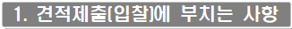 · 본 견적제출에 참가하는 자는 입찰공고문, 지방자치단체 입찰 및 계약집행기준, 지방자치단체 계약일반조건, 지방자치단체 수의계약 운영요령, 청렴계약입찰특별유의서, 청렴계약 특수조건 등을 숙지하고 입찰에 참가하여야 합니다.