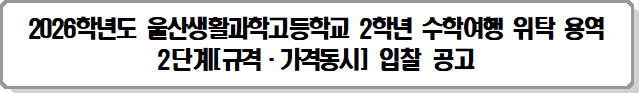 2026학년도 울산생활과학고등학교 2학년 수학여행 위탁용역 계약 업체 선정을