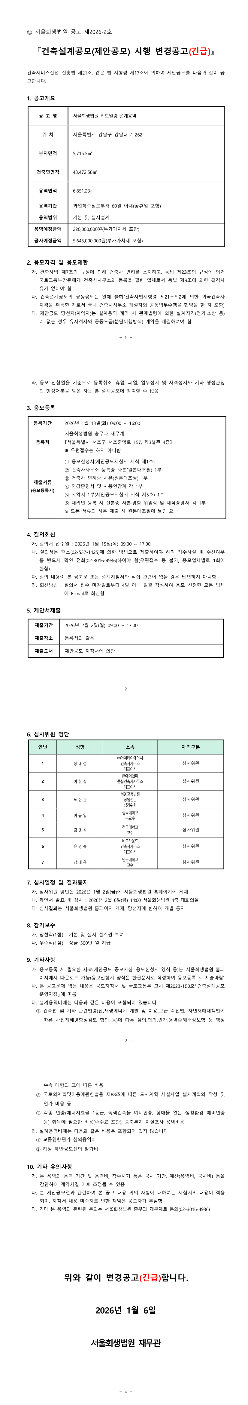 [변경공고][긴급공고]서울회생법원 리모델링 설계용역 변경공고(긴급) |